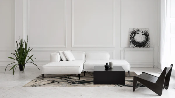 Z dywanem BLUR BLACK Twoje wnętrze staje się galerią wyrafinowanego minimalizmu – z charakterem i duszą.