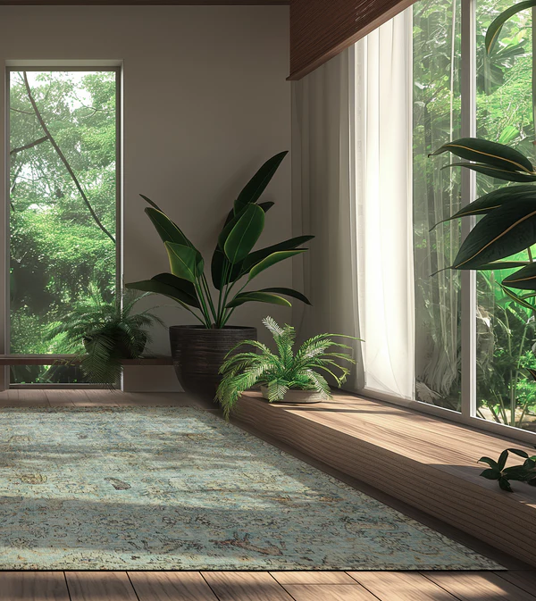 BOHO MINT to dywan, który łączy artystyczny duch stylu boho z estetyką orientalnych tkanin. Delikatna miętowa tonacja przełamana jest efektem postarzenia i bogatym wzorem, przypominającym ręcznie tkane, tradycyjne kobierce. Dzięki nowoczesnej technologii nadruku udało się oddać złożoność i głębię kolorystyczną klasycznych dywanów, a przy tym zachować ich lekkość i funkcjonalność. Zastosowana powłoka Magic Home sprawia, że codzienne czyszczenie to kwestia chwili – wystarczy odrobina wody.