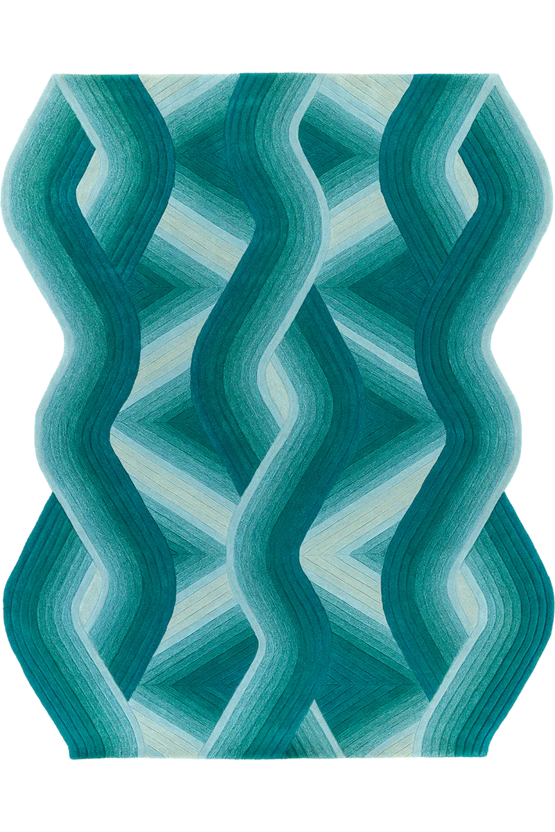 FLOW AQUA to ręcznie tuftowany, wełniany dywan zaprojektowany przez Samuela Acoceberry’ego i wykonany z mistrzowską precyzją przez indyjskich rzemieślników. Jego płynne, przenikające się linie tworzą kompozycję łączącą organiczność z geometryczną dyscypliną, a subtelne przejścia tonalne nadają całości lekkości i wrażenia kontrolowanego ruchu. Niebieska kolorystyka wprowadza do wnętrza spokój i świetlistość, podkreślając wysublimowany charakter projektu.