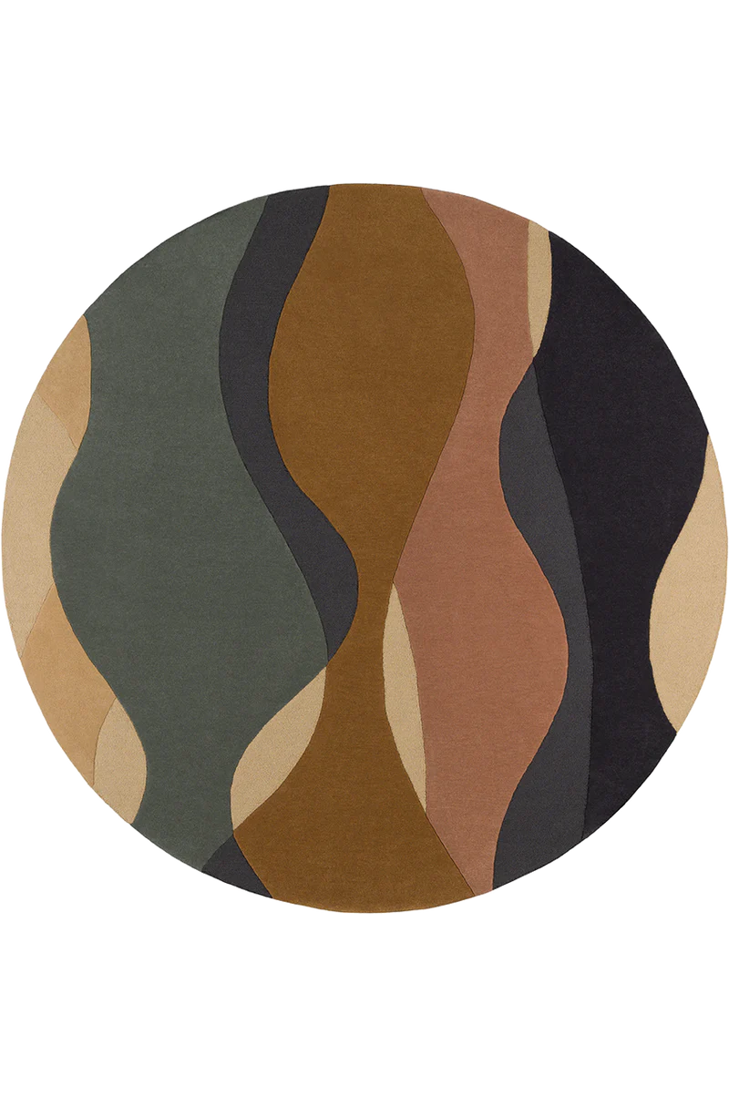 OCÉANE to dywan, który łączy artystyczną ekspresję z funkcjonalnością. Ręcznie tuftowany z wysokiej jakości wełny, zachwyca falistymi, okrągłymi formami, które przywodzą na myśl ruchy morskich prądów i zmieniające się odcienie głębin. Subtelna, wielobarwna paleta – od różu pudrowego, przez zielony szmaragd, po ciepłe beże – wprowadza do wnętrza harmonię i naturalne ciepło.