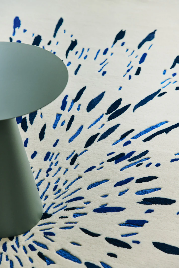 PAINT WHITE BLUE to panoramiczny mural inspirowany subtelną estetyką ręcznie tuftowanego dywanu. Delikatne smugi bieli i błękitu na neutralnym tle wprowadzają do wnętrza spokojny rytm i wizualną lekkość. Kompozycja jest oszczędna, ale właśnie ta powściągliwość nadaje jej elegancji – kolor nie dominuje, lecz tworzy subtelny ruch, który przyciąga wzrok i harmonizuje przestrzeń.