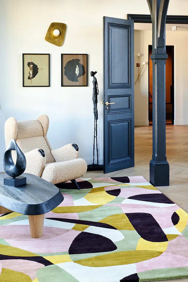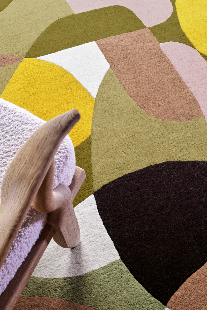 PORTOFINO PRINTEMPS to panoramiczny mural inspirowany artystycznym dynamizmem włoskiej mody lat 70. Stworzony przez Florence Bourel, multikolorowy dywan z wełny tuftowanej ręcznie staje się prawdziwym dziełem sztuki dla Twojego wnętrza. Projekt odzwierciedla wizję Toulemonde Bochart, łączącą tradycyjne rzemiosło z nieograniczoną wyobraźnią.