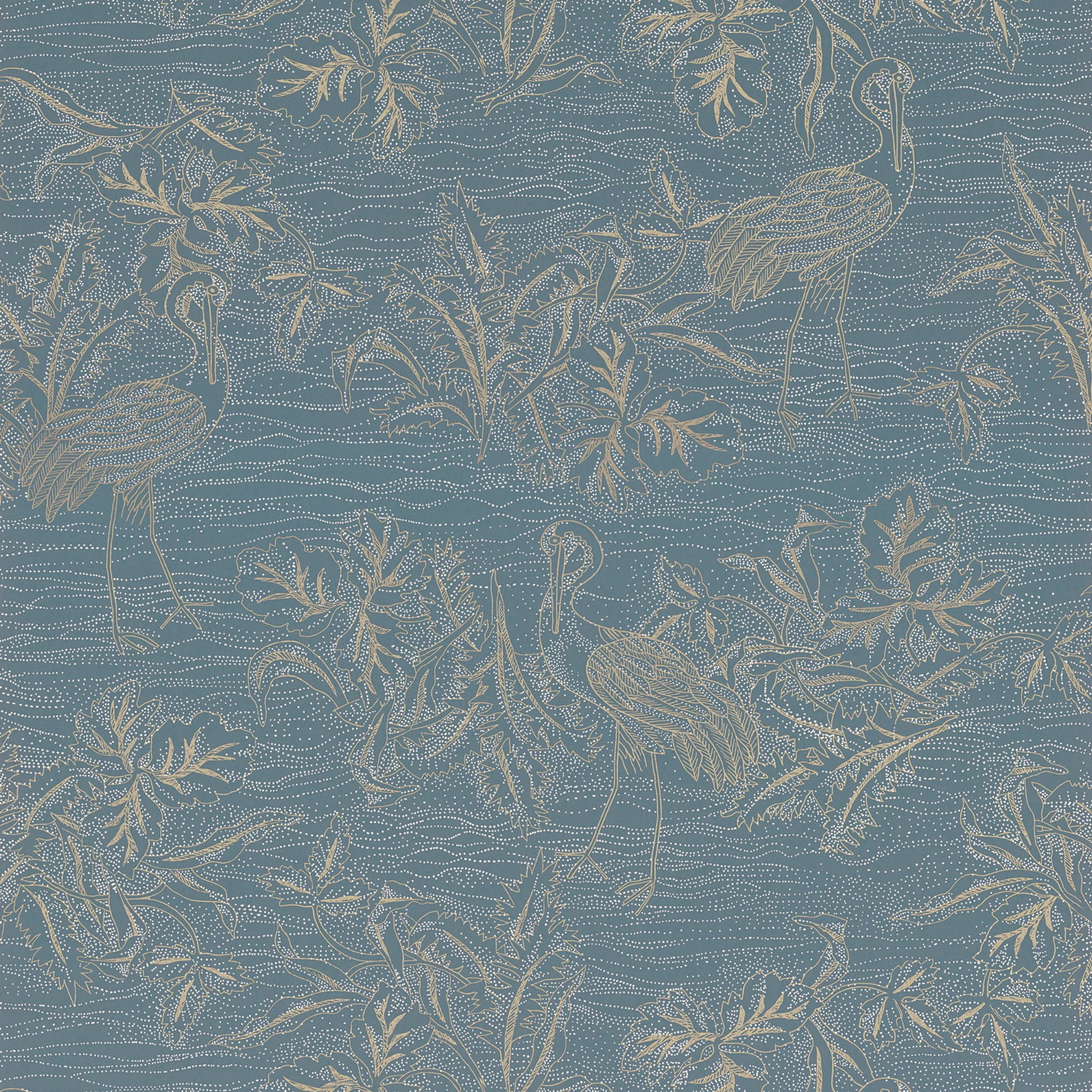 Jesienią ptaki wędrowne przylatują z krajów nordyckich do Afryki, zatrzymując się na Wyspie Ptaków. Biegusy, sieweczki i żurawie zwyczajne lądują w zatoce, gdzie można je obserwować. Na papierze te wdzięczne ptaki brodzące są ukazane jako sylwetki na tle delikatnej roślinności. Subtelne połączenie kredowych i metalicznych atramentów dodaje głębi i wyrafinowania. Tapeta MIRADOR jest dostępna w siedmiu kolorach.
