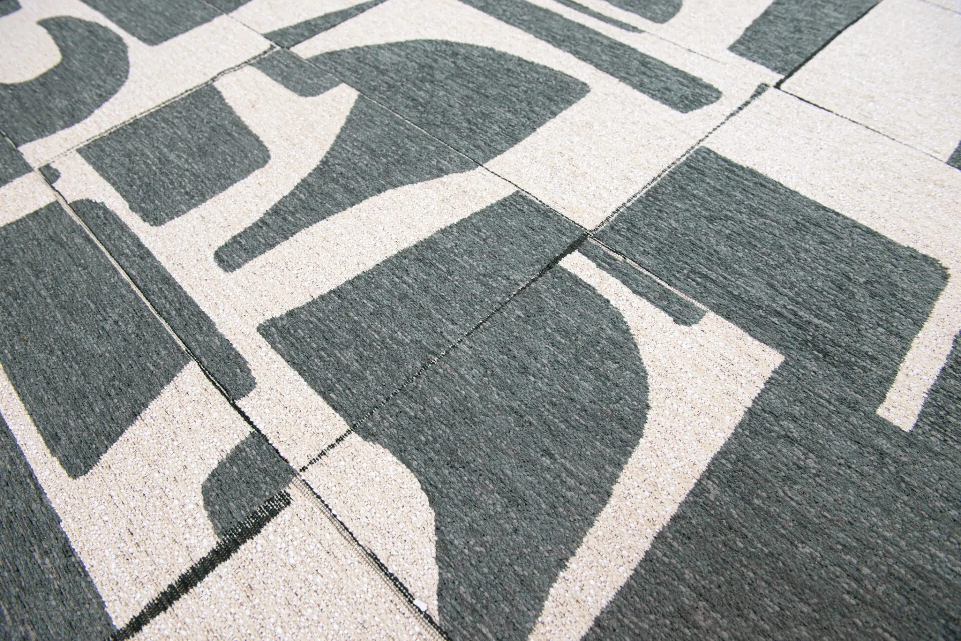 Geometryczny Beżowo Zielony Dywan – PAPERCUT SEA SPRAY 9361, cenionej belgijskiej marki Louis De Poortere, z kolekcji Craft.