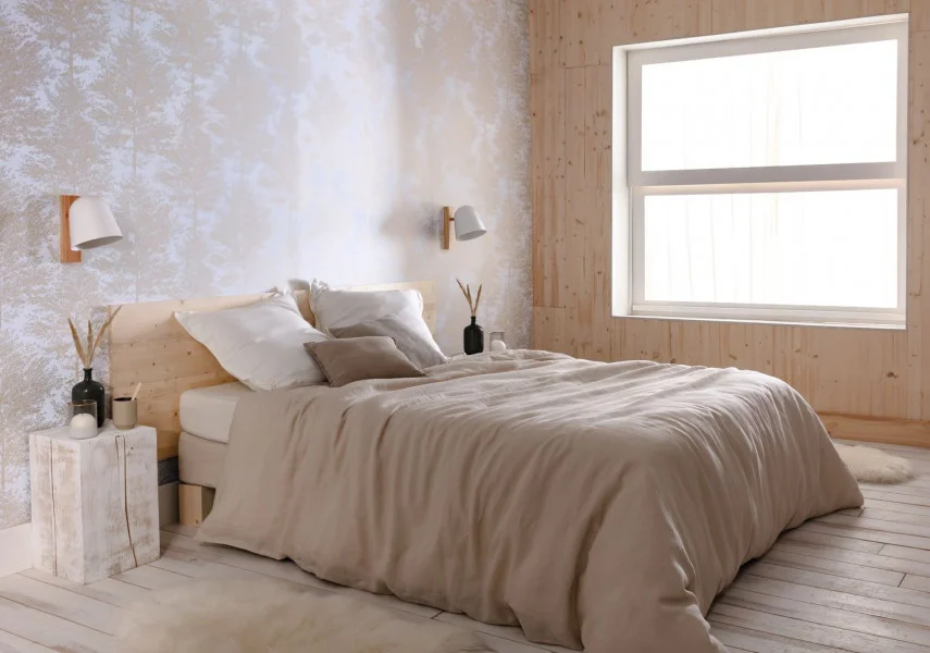 Przepiękna tapeta z motywem drzew na gładkim tle zachęca do relaksu i odprężenia. Wzór stworzony przez francuską markę Caselio pochodzi z katalogu The Place to Bed, który jest w pełni poświęcony sypialni. Powtarzające się drzewa z drobnymi listkami tworzą przyjazną i spokojną atmosferę. Tapeta jest dostępna w pięciu kolorach.