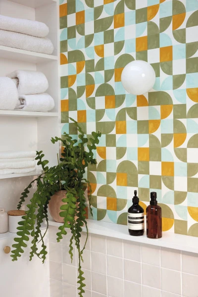 - Wzór: Geometryczny motyw z retro akcentami, który nadaje wnętrzu charakter i dynamikę.