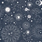 Tapeta LIVE YOUR DREAMS BLEU NUIT Caselio 103246112 to projekt inspirowany trendem astro, słońcem, księżycem i gwiazdami. Nie obiecujemy, że zobaczysz przyszłość, ale design zachwyca złotymi odcieniami i kosmicznym blaskiem — idealny wybór dla wyrafinowanych wnętrz.