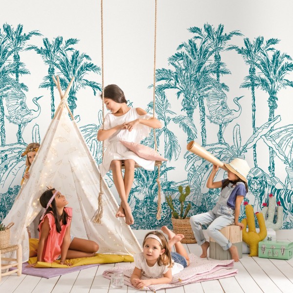 Tapeta PANORAMIQUE LA JUNGLE ENCHANTEE BLEUE Caselio 102436060