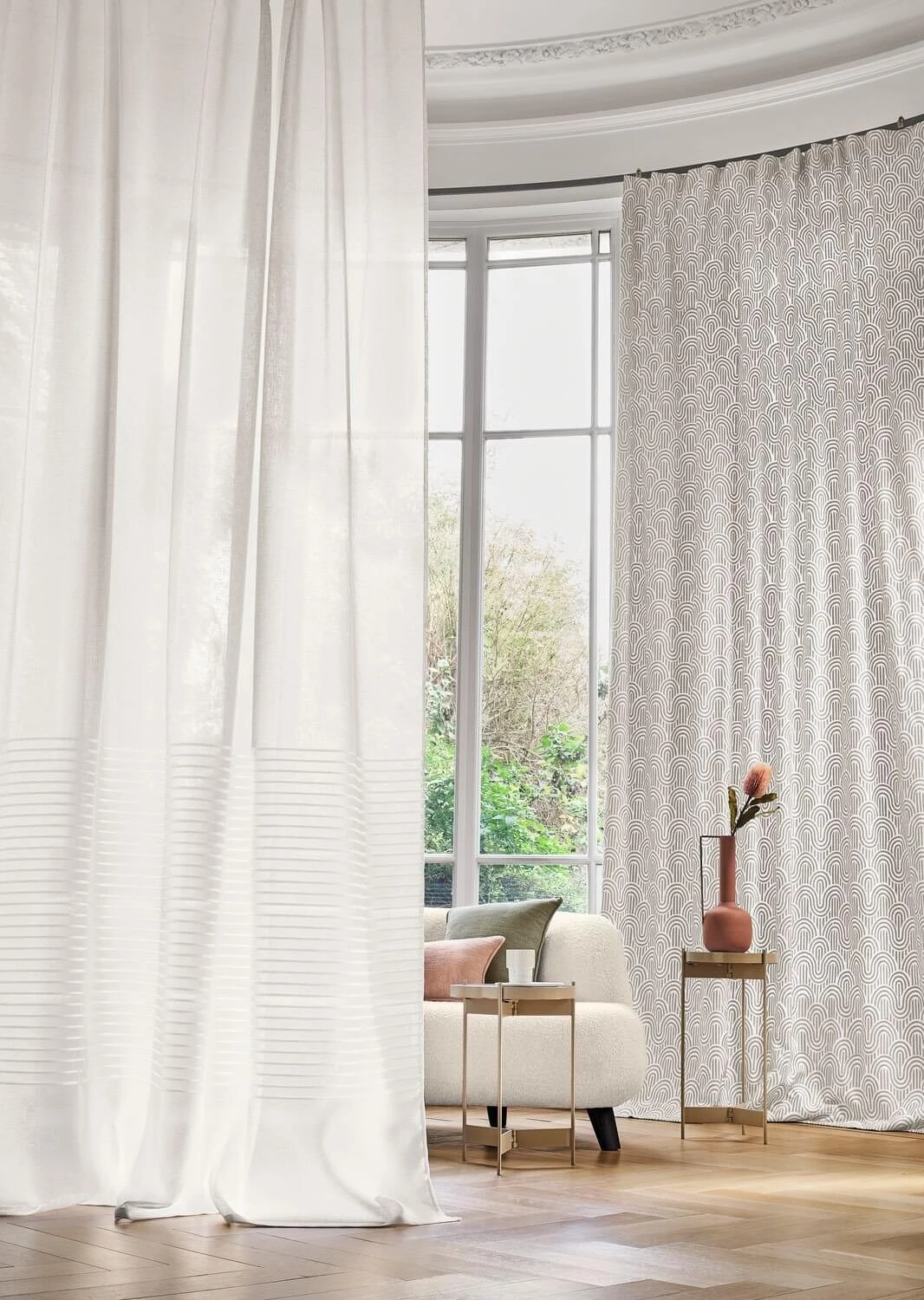 Adagio, z kolekcji Choregraphie od Camengo, to hołd dla elegancji Art Deco z wyrafinowaną haftowaną geometrią. Hipnotyzujące, zaokrąglone wzory płynnie łączą się w naturalnych kolorach, co sprawia, że jest to wszechstronny wybór do zasłon, poduszek i rolet. Ten design dodaje nowoczesnego, ale boho stylu do każdego wnętrza, wprowadzając poczucie rytmu i ruchu w przestrzeń.