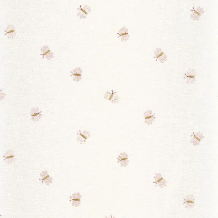 Tkanina Camengo Rose & Nino 45460179 Adorable to woal w temacie Olivia & Léa, na którym motyle są haftowane, tworząc wrażenie ruchu dzięki przejrzystości materiału, tańcząc w oknie. Tkanina Adorable ma szerokość 300 cm, co sprawia, że jest idealna do pomieszczeń o wysokich sufitach.