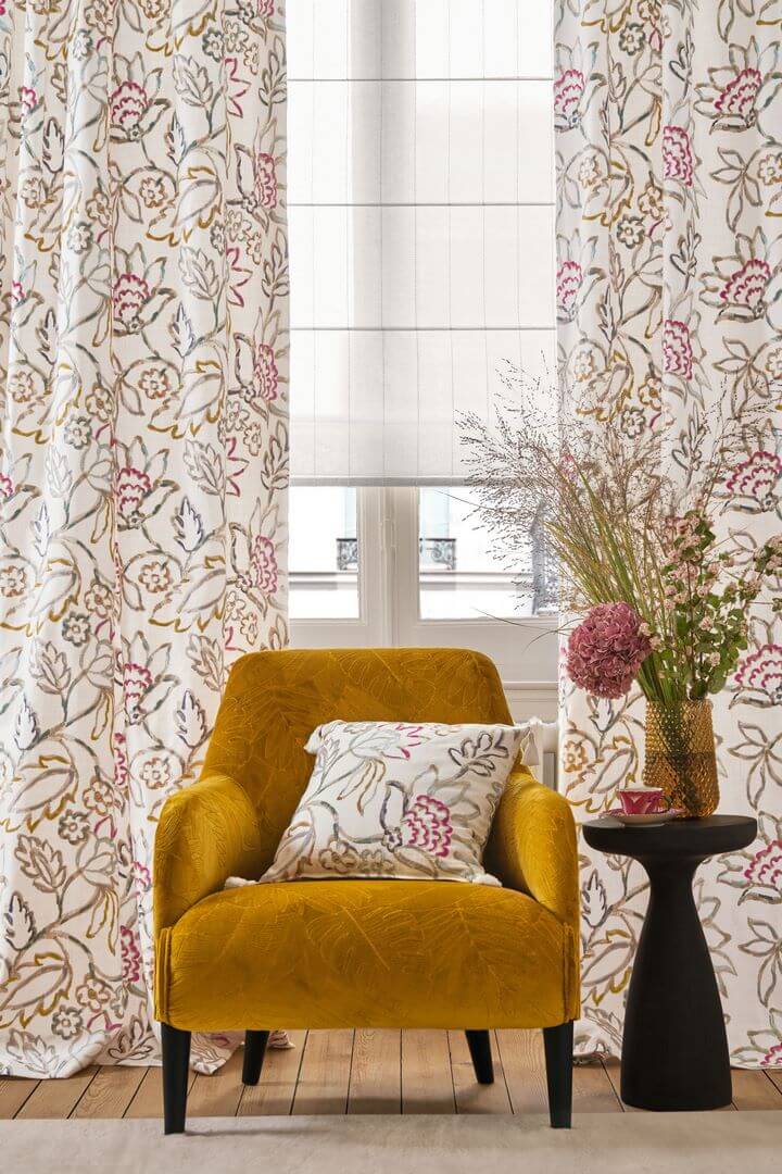Tkanina z kwiatowym wzorem bawi się pięknym i błyszczącym wielokolorowym efektem na świetlistej podstawie. Okazałe stylizowane kwiaty zostały namalowane, a następnie haftowane, co daje kolejne akcenty kolorystyczne. Dzięki temu całość przypomina impresjonistyczny obraz. Tkanina doda wnętrzom nowoczesnego i ponadczasowego charakteru. Doskonale zaprezentuje się jako eleganckie zasłony, stylowe poduszki ozdobne lub rolety rzymskie. Wzór „Aix-en-Provence” występuje w czterech odsłonach kolorystycznych, pochodzi z katalogu Alpilles, od francuskiej marki Camengo. W kolekcji znajdują się przepiękne tkaniny przeznaczone do eleganckich i stylowych wnętrz. Roślinne wzory oraz geometryczne kształty doskonale się ze sobą łączą i pozwalają stworzyć wyjątkowe miejsca z francuskim charakterem. Delikatne hafty, efekt satyny, miękki aksamit czy pikowane wzory dodadzą wnętrzom ciepłego oraz przytulnego charakteru. Niektóre projekty będą doskonałymi zasłonami i poduszkami, inne natomiast sprawdzą się jako obicie pufy czy kanapy.