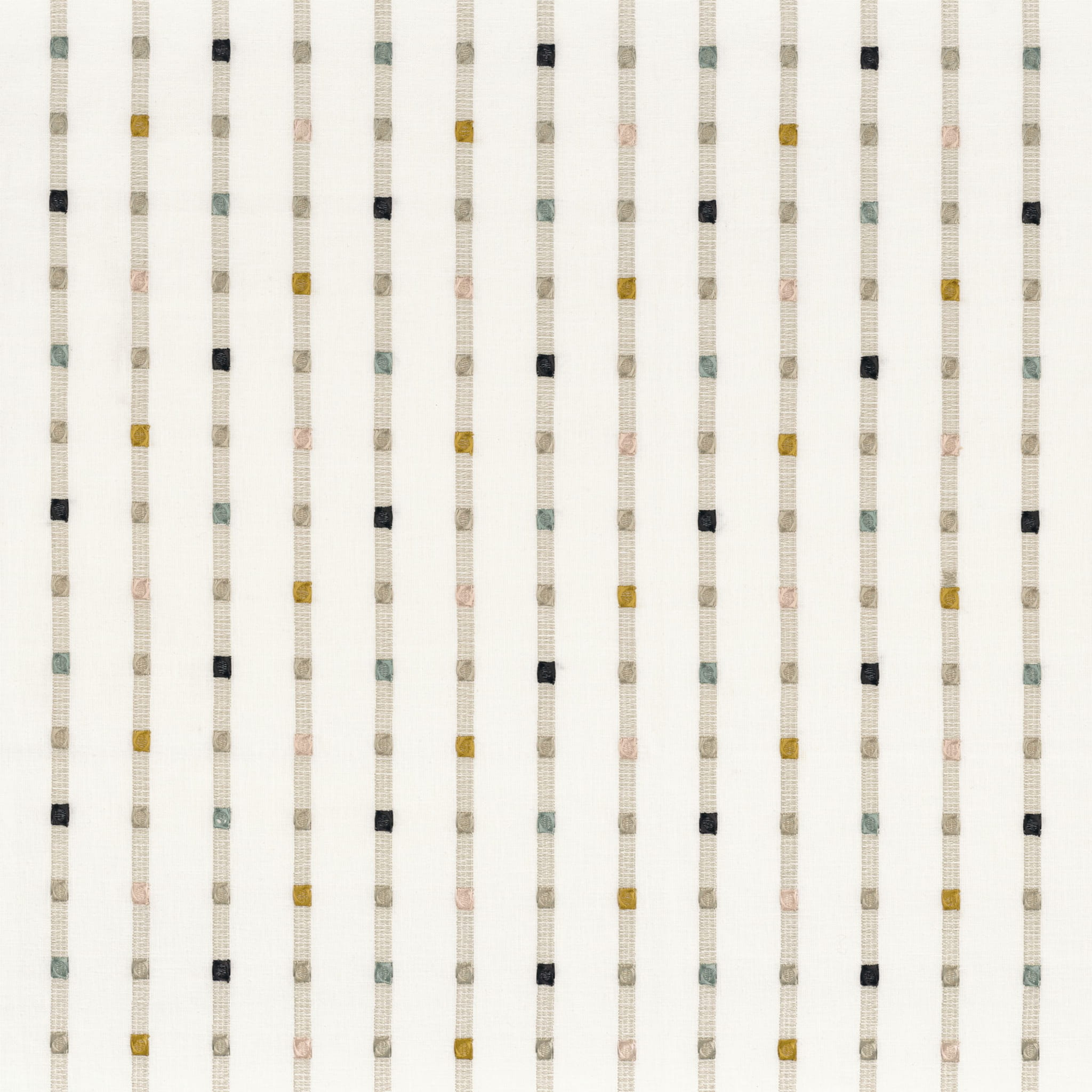 Alhondiga to tkanina haftowana w pasy, podkreślone wieloma kolorowymi wypukłymi akcentami, zawsze liniowymi, regularnymi i geometrycznymi. Na lekkim i świetlistym tle, zestawienia kolorów są odważne, tworząc błyskotliwe tempo i promienne harmonie.