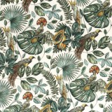INTO THE WILD VELVET to luksusowa tkanina dekoracyjna, która łączy odważny motyw inspirowany naturą z wyjątkową miękkością weluru. Jej aksamitna powierzchnia o wyglądzie bawełny zachwyca głębią koloru i przyjemnym dotykiem, wprowadzając do wnętrza nutę wyrafinowanego komfortu. Wzór został zaprojektowany w mniejszej skali, dzięki czemu idealnie podkreśla formę foteli, sof i mebli tapicerowanych, nadając im niepowtarzalny, indywidualny charakter. Odcień zieleni wzmacnia naturalny wydźwięk tkaniny, budując atmosferę świeżości, spokoju i subtelnej egzotyki.