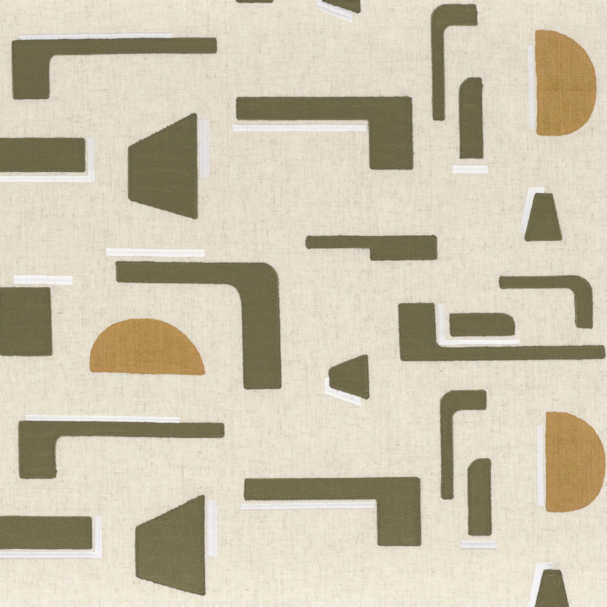 Wspaniały haftowany i drukowany materiał ISOTOPE zachwyca bogatym i subtelnym wzorem graficznym. Geometryczne motywy są ozdobione dwoma różnymi ściegami i rodzajami nici: pierwsza, o wyglądzie bawełny i wełny, jest haftowana bardzo gęstym ściegiem łańcuszkowym, nadającym niezwykłą objętość. Druga, o jedwabistym wyglądzie, została wykonana eleganckim ściegiem satynowym. Ręcznie wykonany nadruk blokowy, który tworzy wzór, został dodatkowo podkreślony złotym atramentem. Połączenie różnych wzorów i technik tworzy kontrastujące faktury, które pięknie odbijają światło, nadając tkaninie wyjątkowy charakter.