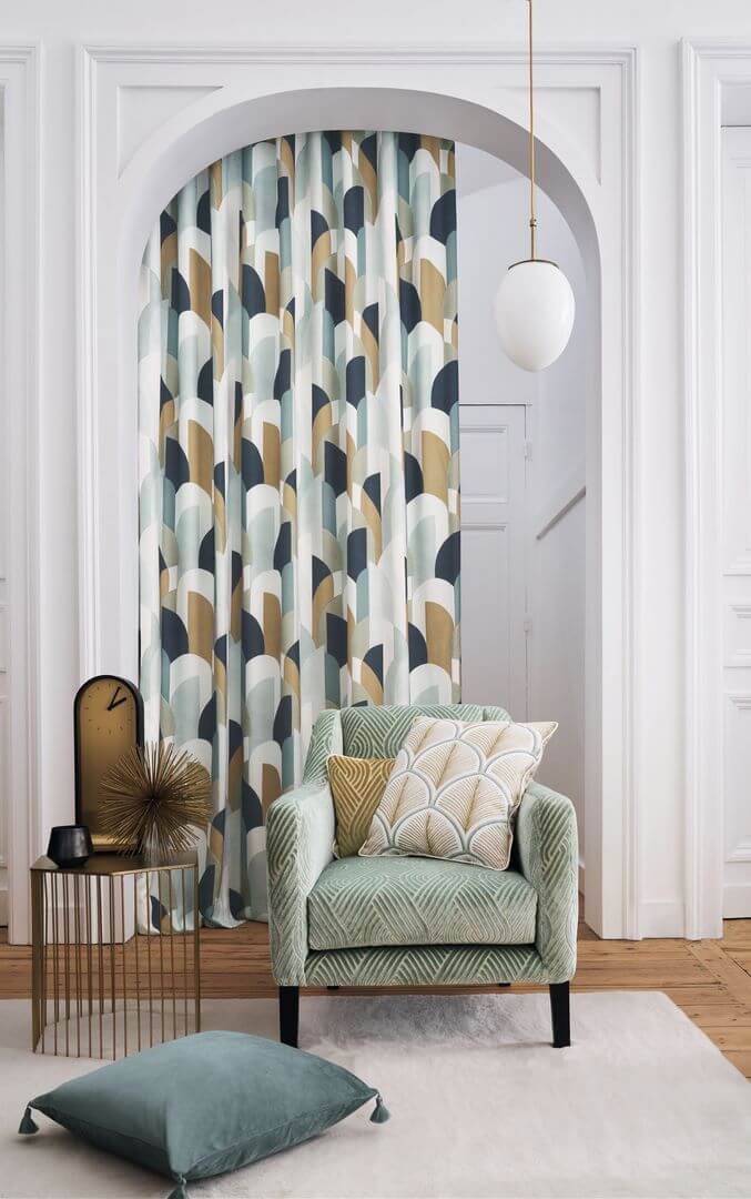 Tkanina z geometrycznym wzorem charakterystycznym dla eleganckiego stylu art-deco. Wzór „Lisbonne” został zainspirowany „Miastem 7 Wzgórz” i licznymi łukami, które tam znajdziemy. Warstwowe kolory w oryginalnej i miękkiej harmonii stworzą we wnętrzu niezwykłą głębię. Charakterystyczne łuki zostały nadrukowane na naturalnym płótnie, które jest mieszanką wiskozy oraz lnu. Tkanina doskonale zaprezentuje się jako obicie siedzenia bądź stylowe i eleganckie zasłony lub ozdobne poduszki. Wzór „Lisbonne” występuje w trzech odsłonach kolorystycznych, pochodzi od francuskiej marki Camengo z katalogu Alfama. Cały zbiór zawiera tkaniny z eleganckimi wzorami, które można wykorzystać w klasycznych oraz nowoczesnych aranżacjach. Od charakterystycznych łuków i wachlarzy w stylu art-deco, po nowoczesny motyw kratownicy oraz projekty nawiązujące do marmurkowych wzorów. Niektóre tkaniny znakomicie zaprezentują się jako delikatne i zwiewne firanki, inne będą doskonałymi zasłonami, roletami oraz poduszkami ozdobnymi. Część tkanin świetnie sprawdzi się w roli obicia sofy, kanapy czy zagłówka.