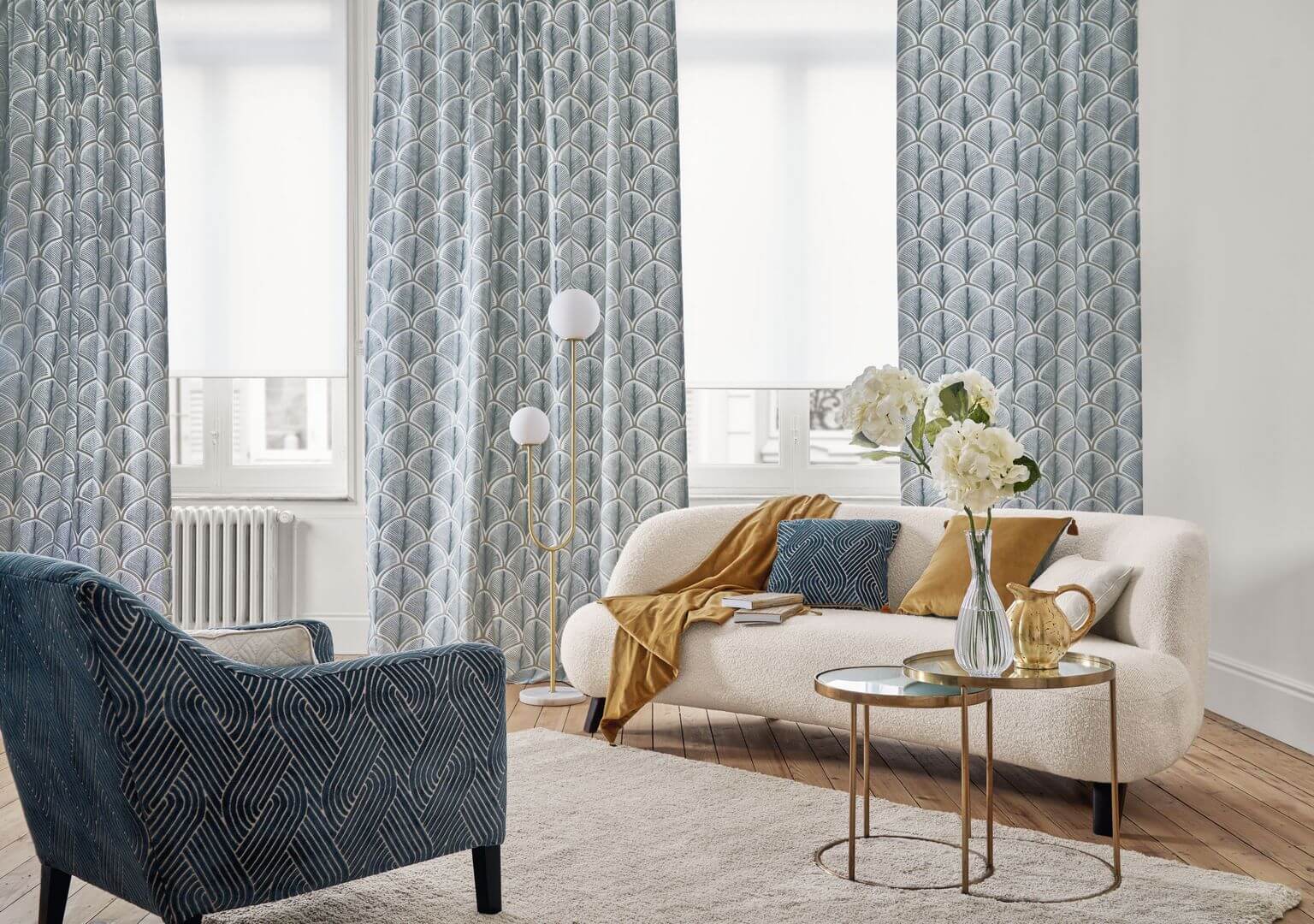 Bawełniana tkanina ze wzorem wachlarzy w stylu art-deco. Wzór „Palacio” został wykonany techniką druku blokowego - tradycyjnego indyjskiego rzemiosła. Każdy wzór jest nakładany ręcznie, dwa nałożone na siebie kolory tworzą niepowtarzalny i autentyczny projekt o pięknej objętości. Tkanina jest podkreślona eleganckim haftem, który dodaje wyrafinowania i szyku. Wzór jest jak dzieło sztuki z misternie dopracowanymi detalami, uniesione metalową przędzą i bardzo szykownymi matowymi i błyszczącymi kontrastami. Tkanina doskonale zaprezentuje się jako zasłonka oraz eleganckie poduszki, występuje w czterech odsłonach kolorystycznych, pochodzi od francuskiej marki Camengo z katalogu Alfama. Cały zbiór zawiera tkaniny z eleganckimi wzorami, które można wykorzystać w klasycznych oraz nowoczesnych aranżacjach. Od charakterystycznych łuków i wachlarzy w stylu art-deco, po nowoczesny motyw kratownicy oraz projekty nawiązujące do marmurkowych wzorów. Niektóre tkaniny znakomicie zaprezentują się jako delikatne i zwiewne firanki, inne będą doskonałymi zasłonami, roletami oraz poduszkami ozdobnymi. Część tkanin świetnie sprawdzi się w roli obicia sofy, kanapy czy zagłówka.