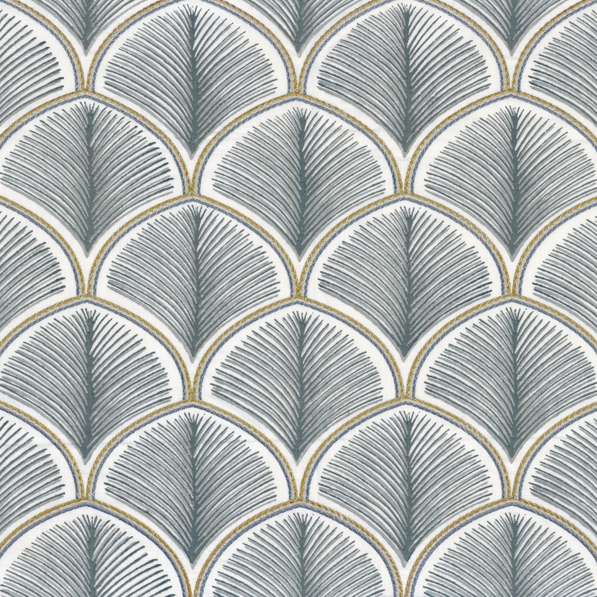 Bawełniana tkanina ze wzorem wachlarzy w stylu art-deco. Wzór „Palacio” został wykonany techniką druku blokowego - tradycyjnego indyjskiego rzemiosła. Każdy wzór jest nakładany ręcznie, dwa nałożone na siebie kolory tworzą niepowtarzalny i autentyczny projekt o pięknej objętości. Tkanina jest podkreślona eleganckim haftem, który dodaje wyrafinowania i szyku. Wzór jest jak dzieło sztuki z misternie dopracowanymi detalami, uniesione metalową przędzą i bardzo szykownymi matowymi i błyszczącymi kontrastami. Tkanina doskonale zaprezentuje się jako zasłonka oraz eleganckie poduszki, występuje w czterech odsłonach kolorystycznych, pochodzi od francuskiej marki Camengo z katalogu Alfama. Cały zbiór zawiera tkaniny z eleganckimi wzorami, które można wykorzystać w klasycznych oraz nowoczesnych aranżacjach. Od charakterystycznych łuków i wachlarzy w stylu art-deco, po nowoczesny motyw kratownicy oraz projekty nawiązujące do marmurkowych wzorów. Niektóre tkaniny znakomicie zaprezentują się jako delikatne i zwiewne firanki, inne będą doskonałymi zasłonami, roletami oraz poduszkami ozdobnymi. Część tkanin świetnie sprawdzi się w roli obicia sofy, kanapy czy zagłówka.