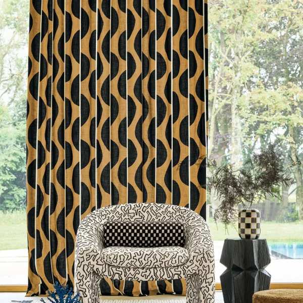 Wzór „VIAGGIO” to drukowany design, dodatkowo haftowany pasem z przędzy bawełnianej i wiskozowej, który nadaje tkaninie piękną objętość, subtelnie podkreśloną delikatnym akcentem satyny. Jego odważny, a jednocześnie miękki styl wyróżnia się unikalnym i wyrafinowanym charakterem dzięki misternym haftowanym detalom. Nieregularne kontury ręcznie malowanego wzoru nadają mu nowoczesny wygląd, podkreślony naturalną elegancją lniano-wiskozowej bazy.