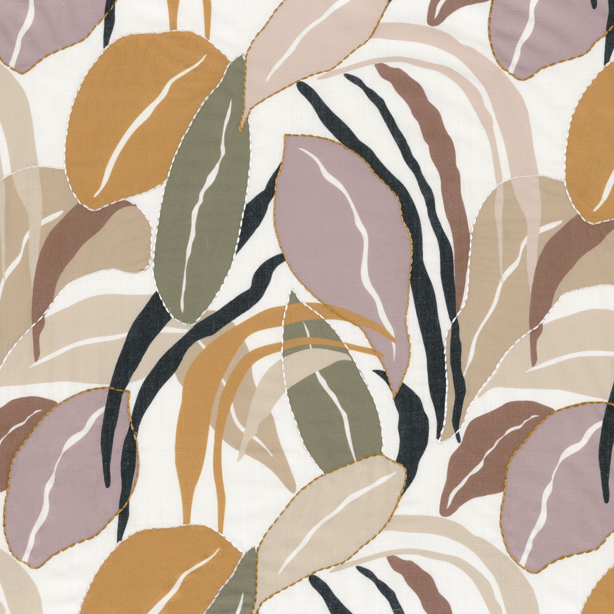 Liście w „VILLA D’ETE” są wyjątkowo duże, idealnie wpisując się w ultranowoczesną, artystyczną estetykę. Nakładające się botaniczne kształty tworzą duże płaszczyzny koloru, nadając kompozycji poetycki charakter, który zaprasza do refleksji. Tkanina ta jest drukowana i ręcznie haftowana, a jej surowy, autentyczny wygląd zostaje subtelnie podkreślony przez delikatny połysk haftu satynowego, dodając całości wyrafinowanego uroku.