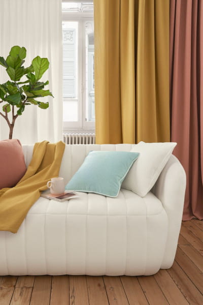 “ZENITH” to wyjątkowa jednolita tkanina o wyglądzie bouclé, niezwykłej miękkości i wspaniałym, puszystym układzie. Jej imponująca jakość (30 000 Martindale), szerokość 3 metry oraz luksusowa płynność i ciężar (450 g/m²) sprawiają, że jest idealna zarówno na zasłony, jak i na obicia mebli.